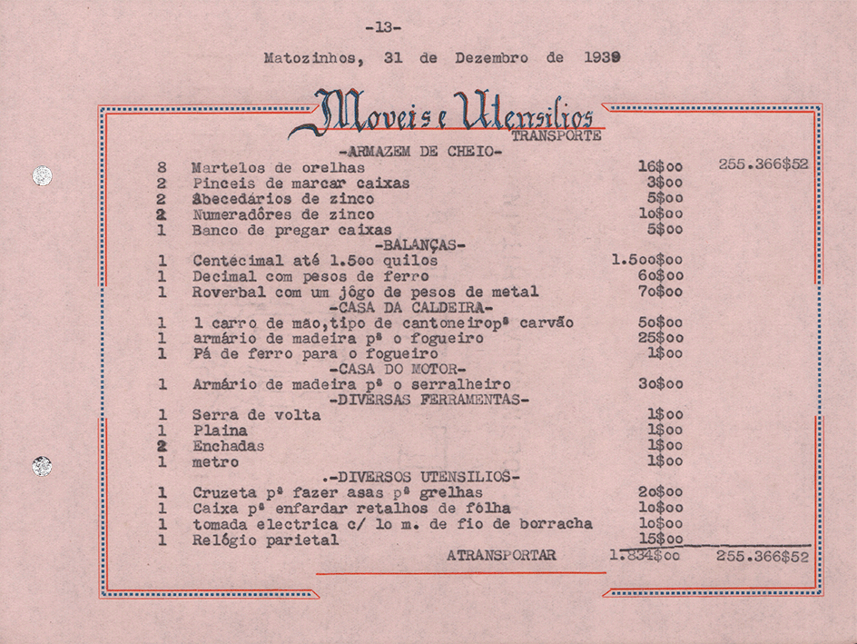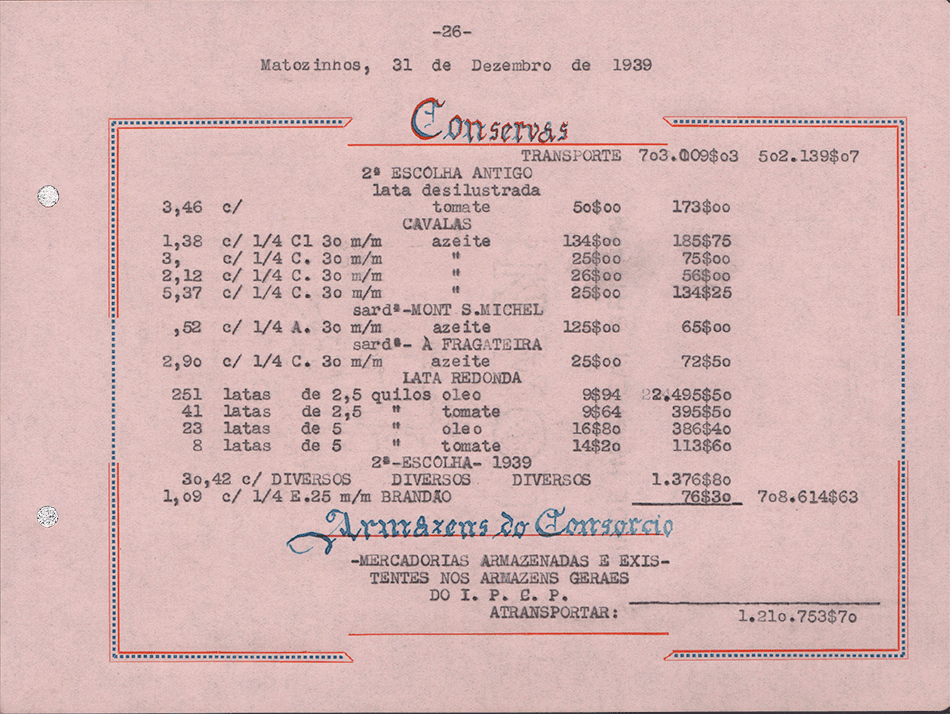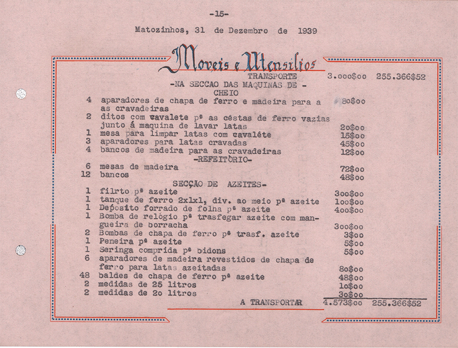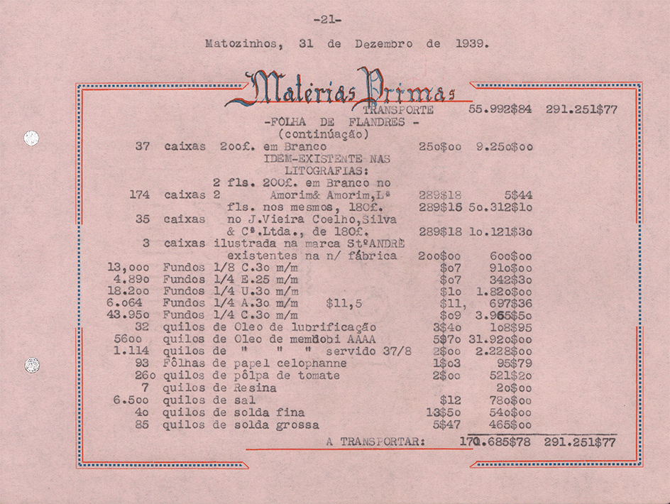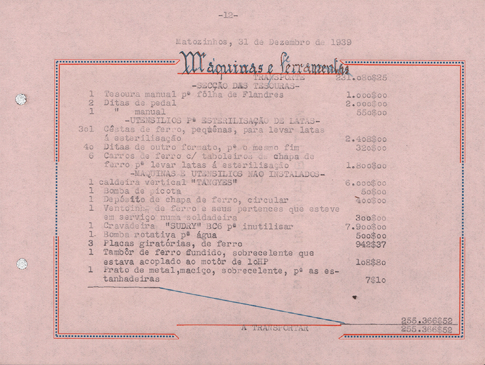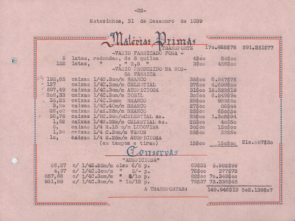 Sociedade de Conservas Joana d`Arc, L. da - Inventário e Balanço de 1939