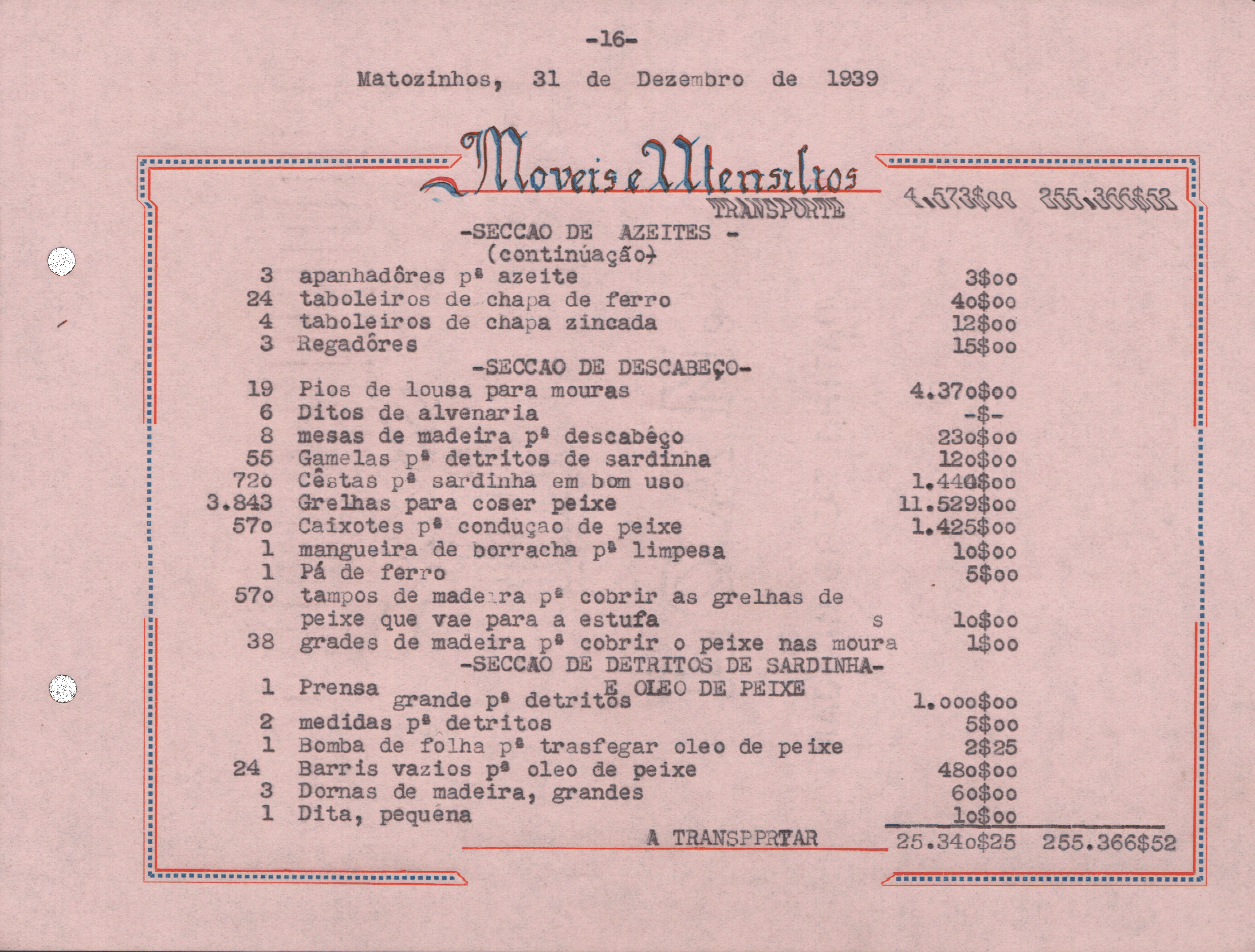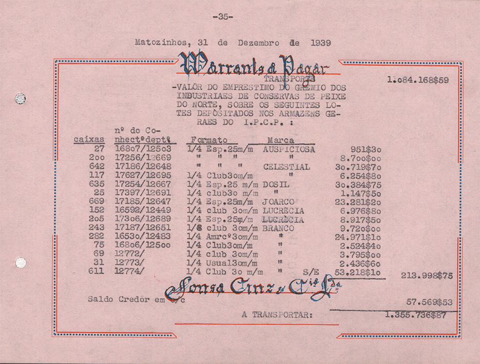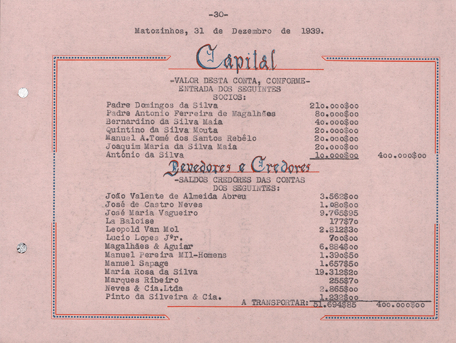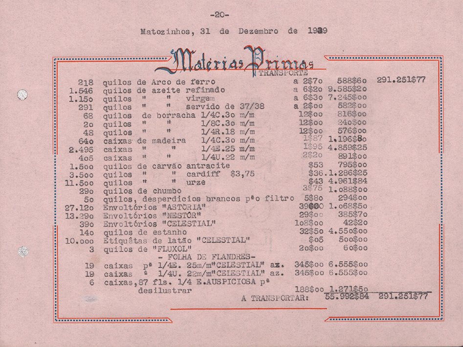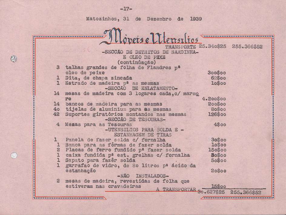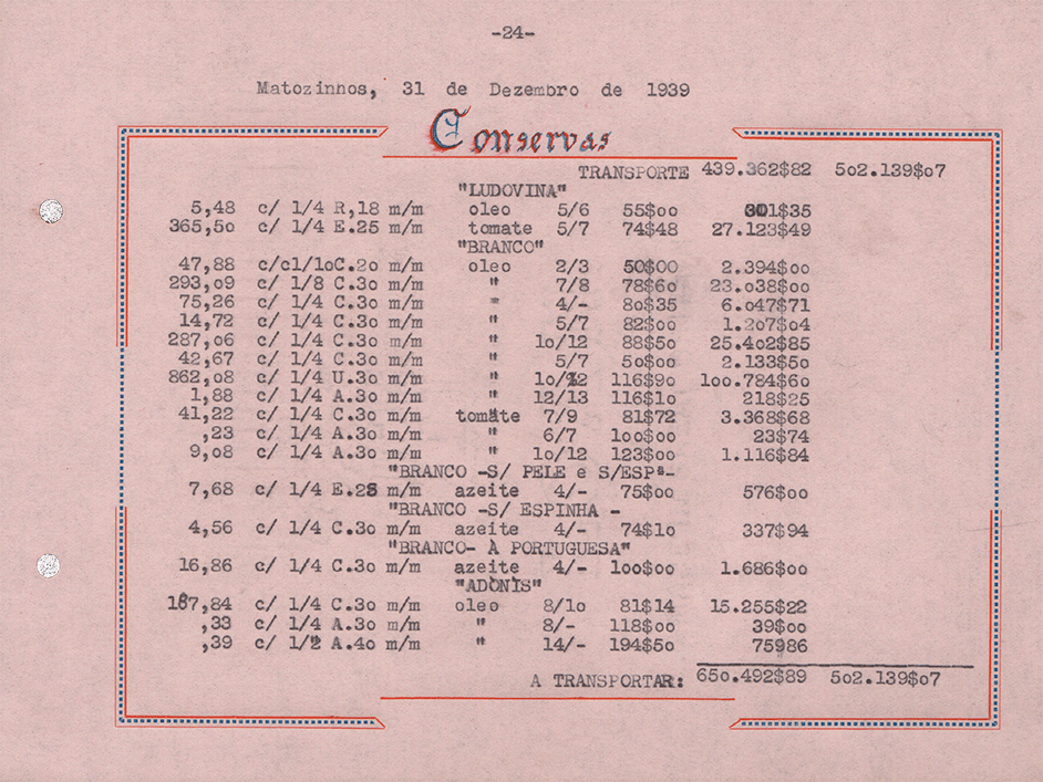 Sociedade de Conservas Joana d`Arc, L. da - Inventário e Balanço de 1939