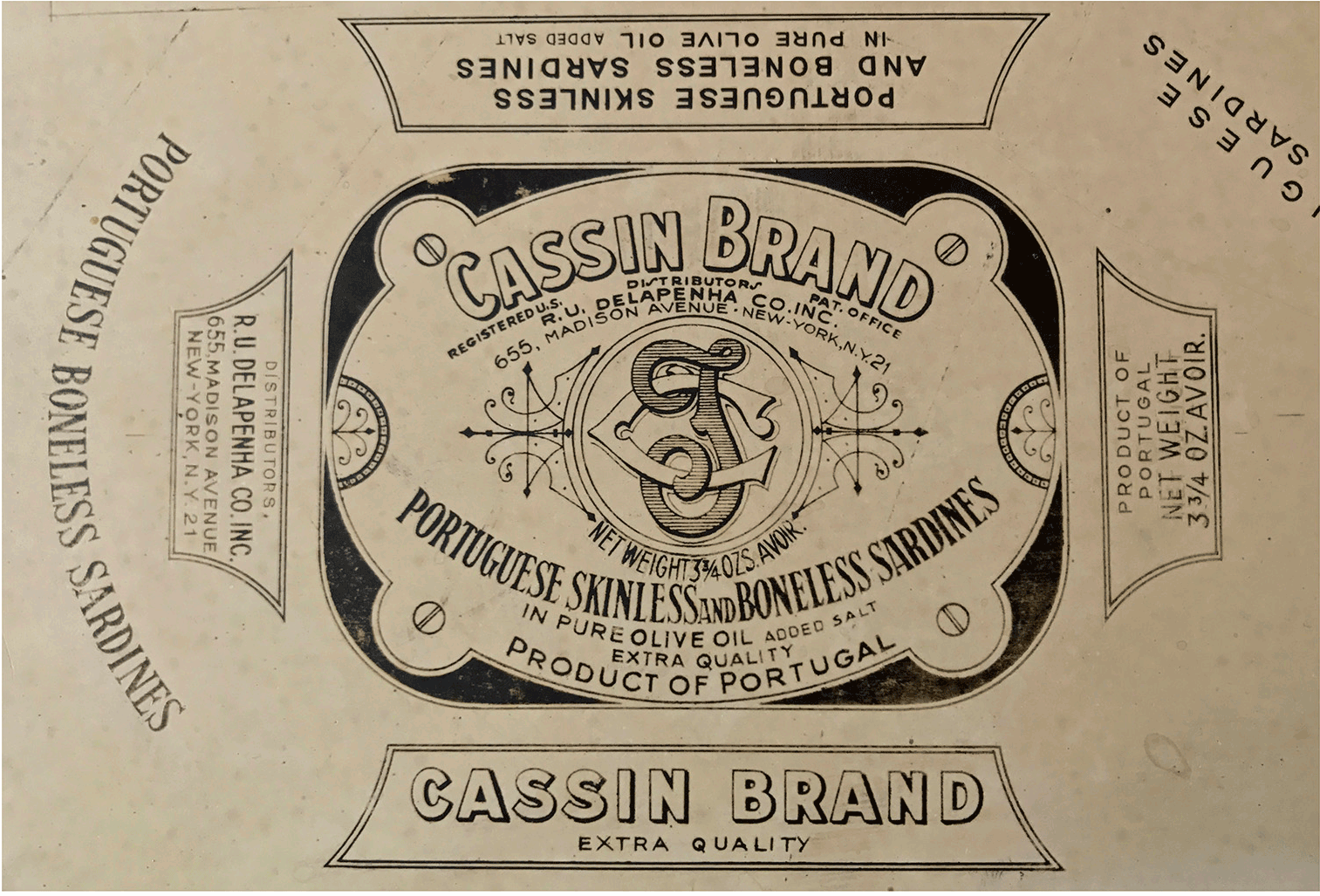 Produced in Portugal for R. U. Delapenha Co Inc. NY