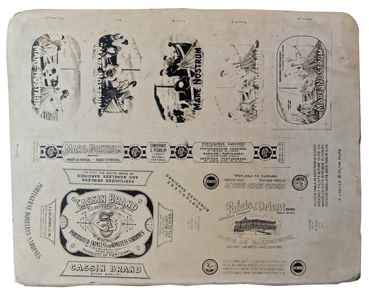 Pedra litográfica marcas Mare Nostrum, Palais d`Orient, Cassin