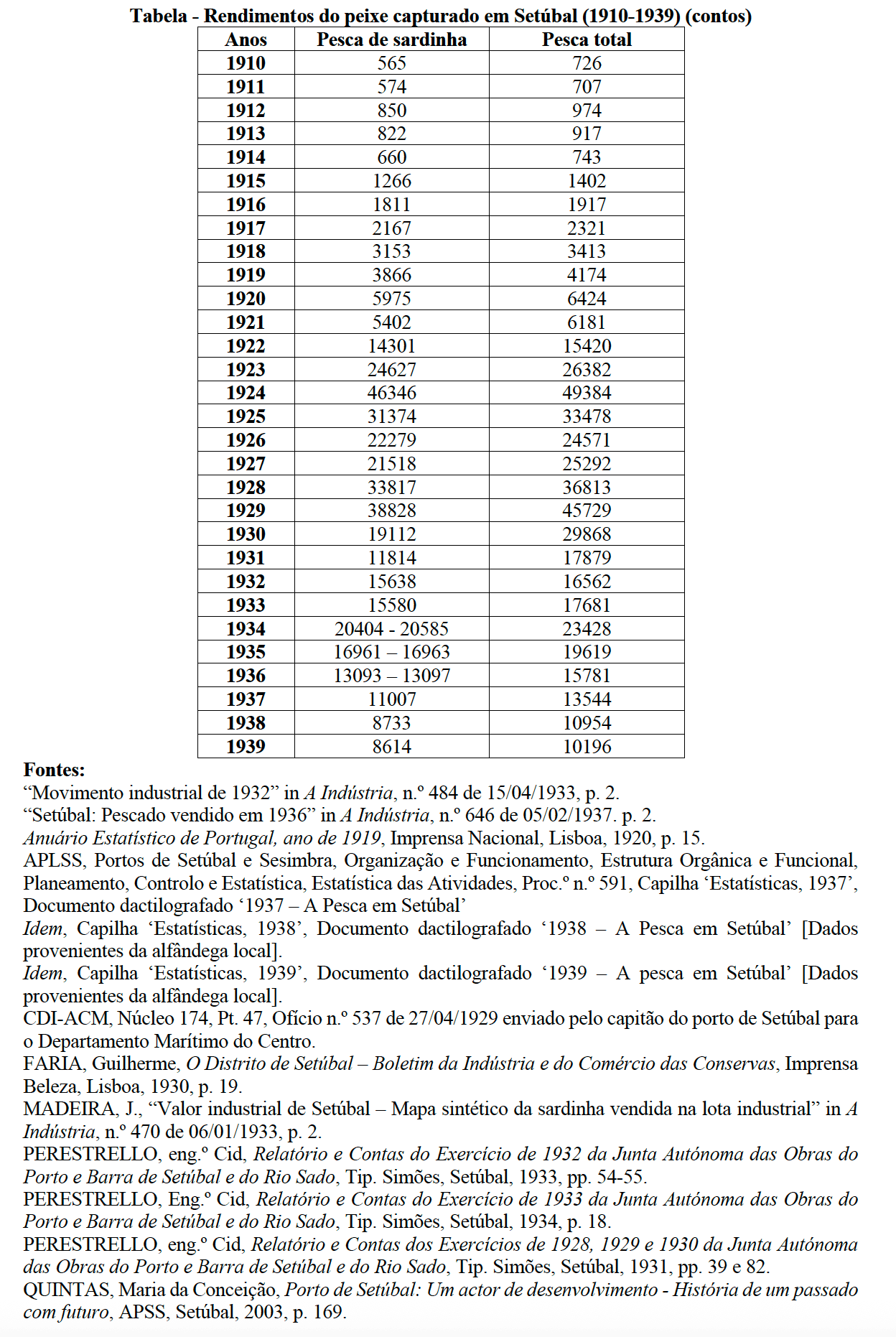 Instituto Português de Conservas de Peixe, Compilação de Elementos Estatísticos sobre Conservas de Peixe, I.P.C.P., Lisboa, 1954, p. 41.