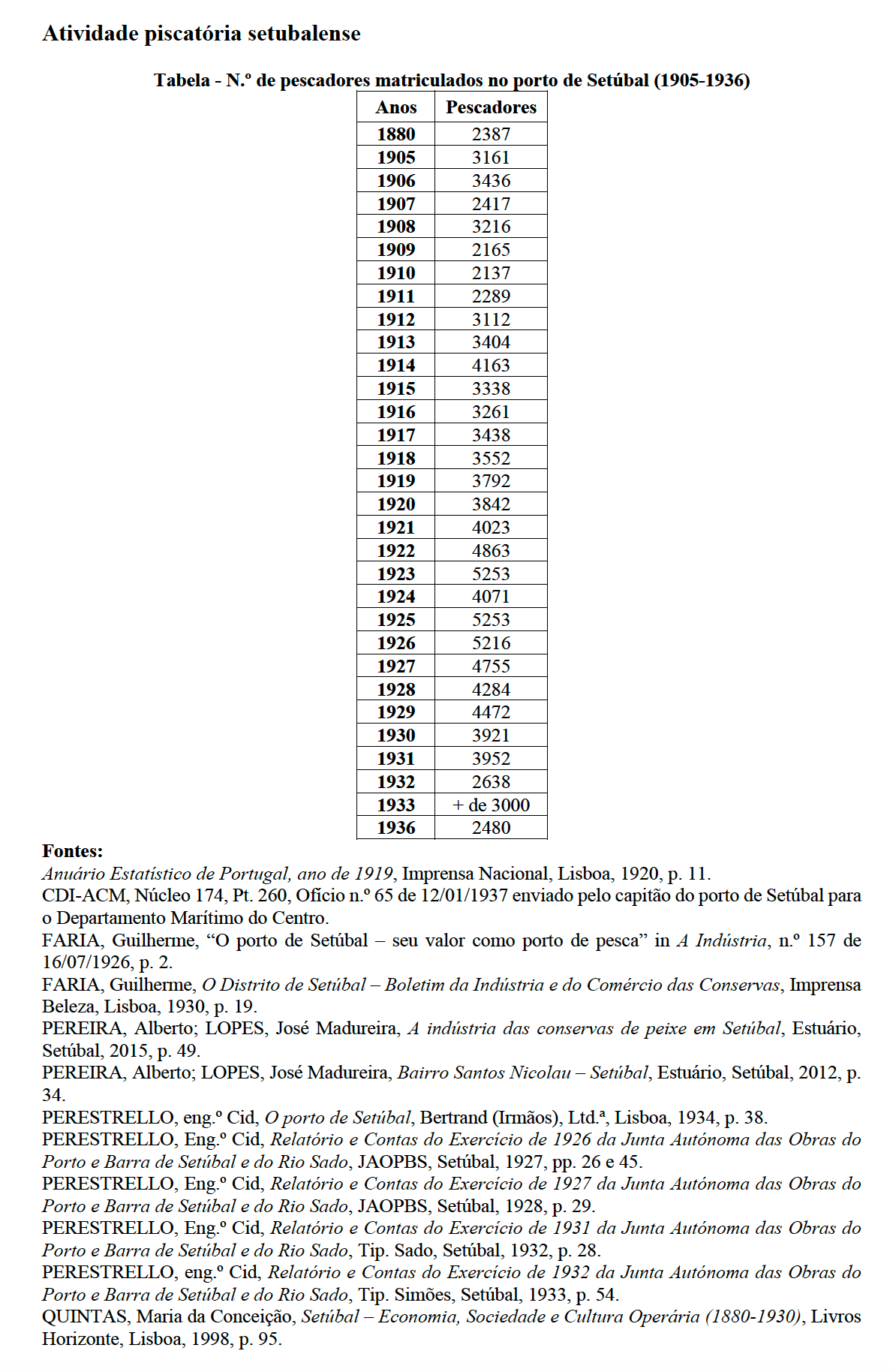QUINTAS, Maria da Conceição, Setúbal – Economia, Sociedade e Cultura Operária (1880-1930), Livros Horizonte, Lisboa, 1998, p. 117.