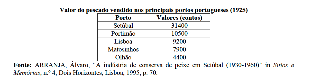 840 Citado a partir de: PEREIRA, Alberto; LOPES, Madureira, A indústria das conservas de peixe em Setúbal, Estuário, Setúbal, 2015, p. 284.