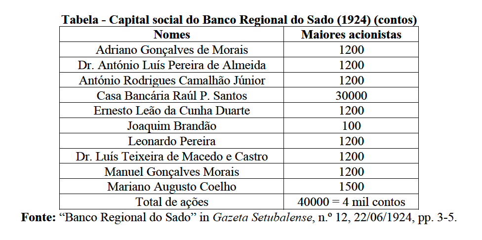 834 Citado a partir de: MENDES, José Amado (coord.), “Banco Regional do Sado (1924-?)” in Dicionário de História Empresarial Portuguesa – Séculos XIX e XX, vol. I, Instituições Bancárias, UAL/INCM, Lisboa, 2013, p. 379.