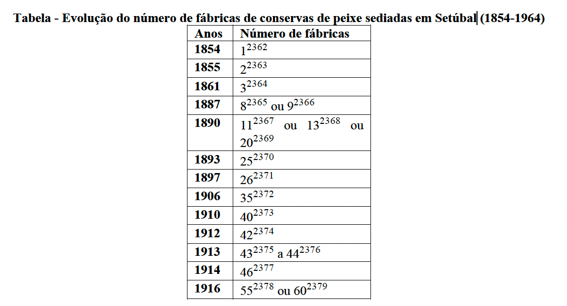 [ver Tabelas – ‘Evolução do número de fábricas de conservas de peixe sediadas em Setúbal (1854-1964)’]