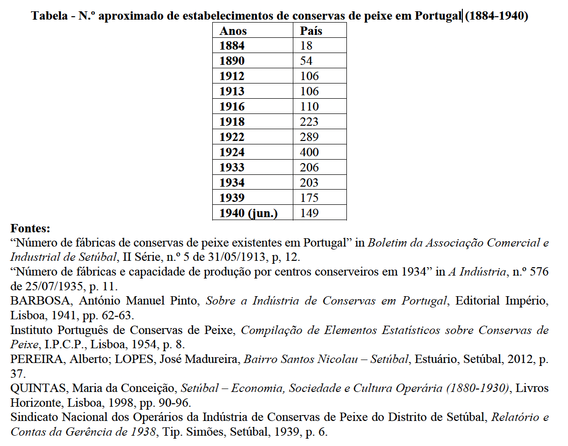 793 ALMEIDA, Andreia da Silva, A indústria conserveira de Sesimbra (1933-1945), Novas Edições Académicas, s.l., 2015, pp. 90-92.