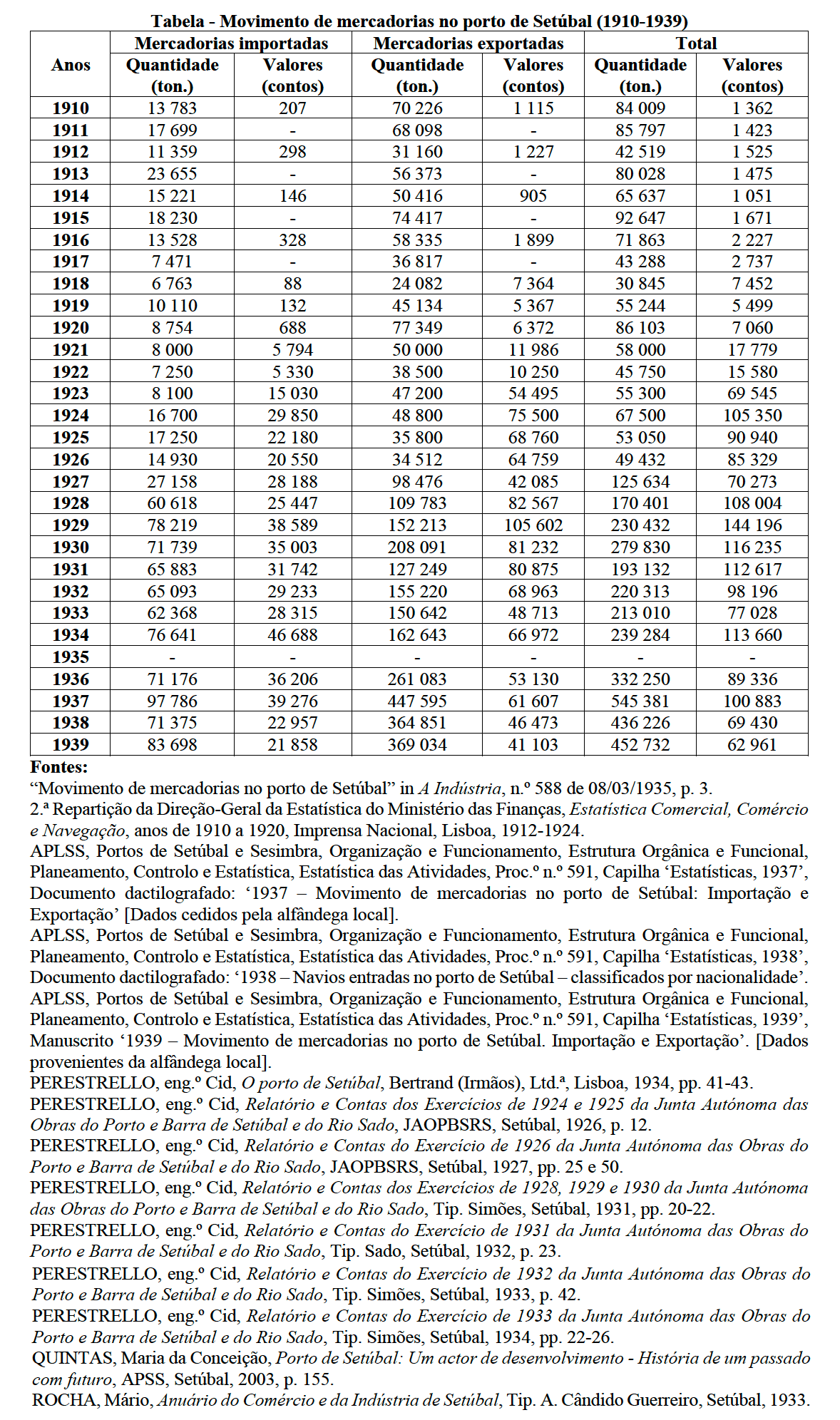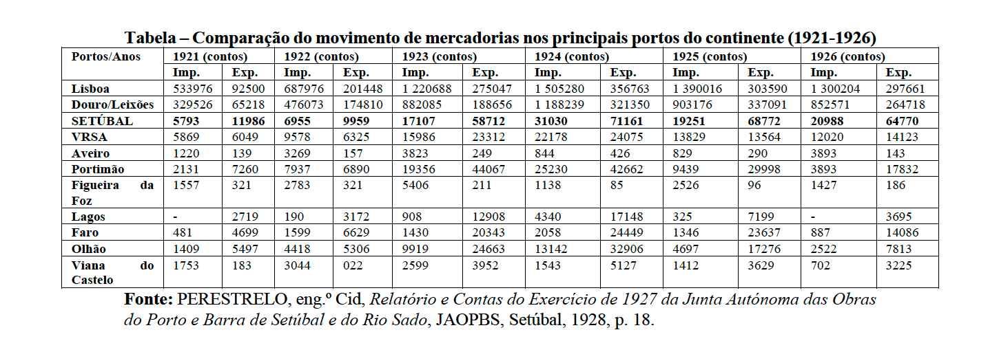[ver Tabela – Principais mercadorias exportadas pelo porto de Setúbal (1910-1939)]