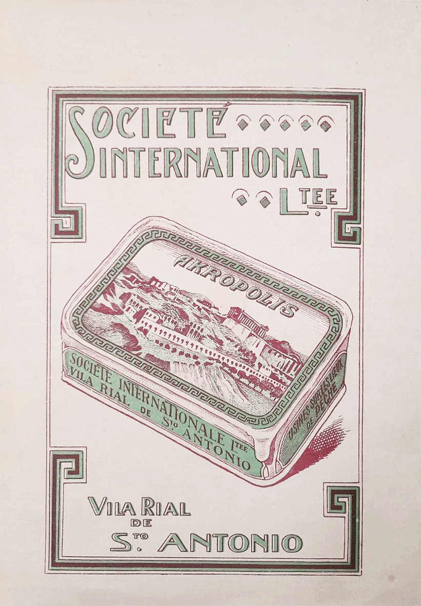 The French name “Société Internationale Ltee”, with the abbreviation “Ltee” (short for Limitée), indicates a French-style company — suggesting a business with foreign capital or an export-oriented profile, typical of the period between 1890 and 1910, when several French and Belgian companies invested in fish canning factories in the Algarve and Setúbal.