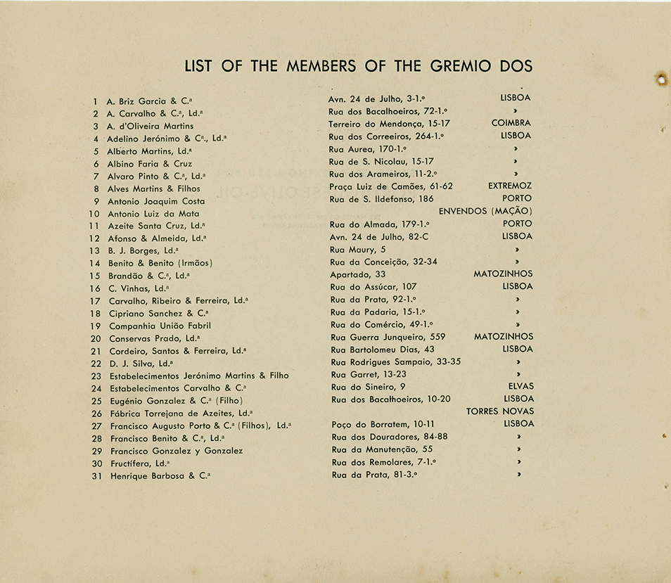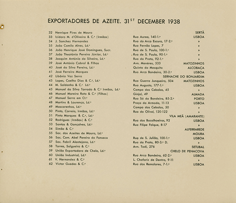 | 50 | Pinto, Correia, Irmãos, Ld.ª | Rua do Olival, 120-122 | Lisboa |